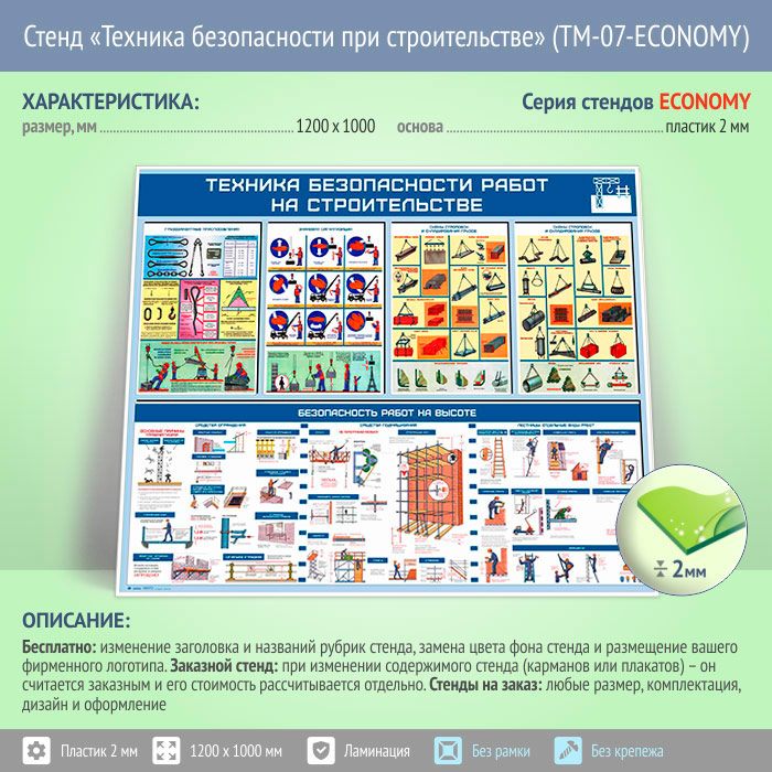 Стенд «Техника безопасности при строительстве» (TM-07-ECONOMY) в Ижевске купить