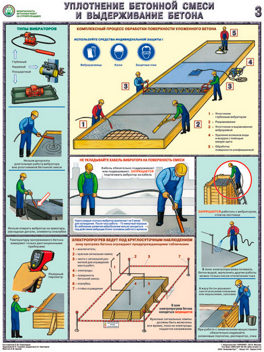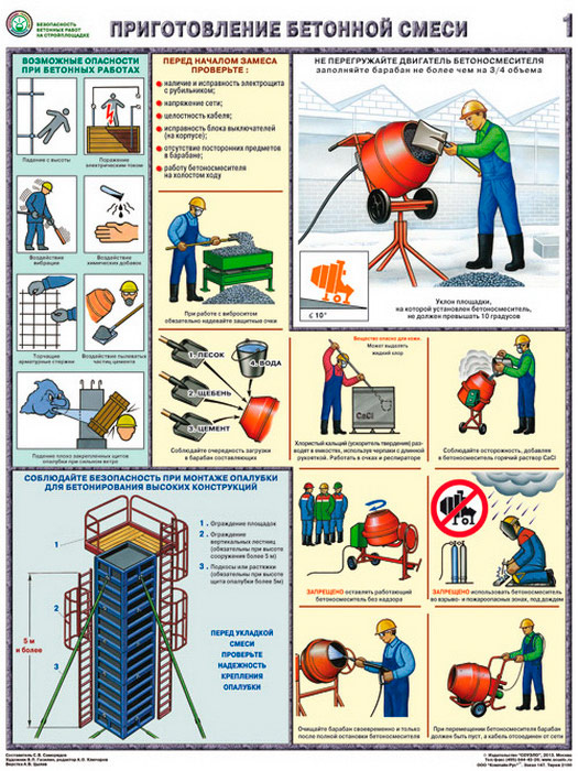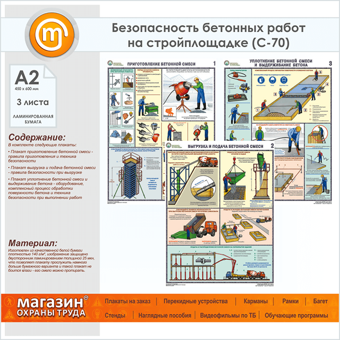 Плакаты «Безопасность бетонных работ на стройплощадке» (С-70, ламинированная бумага, А2, 3 листа) в Ижевске купить