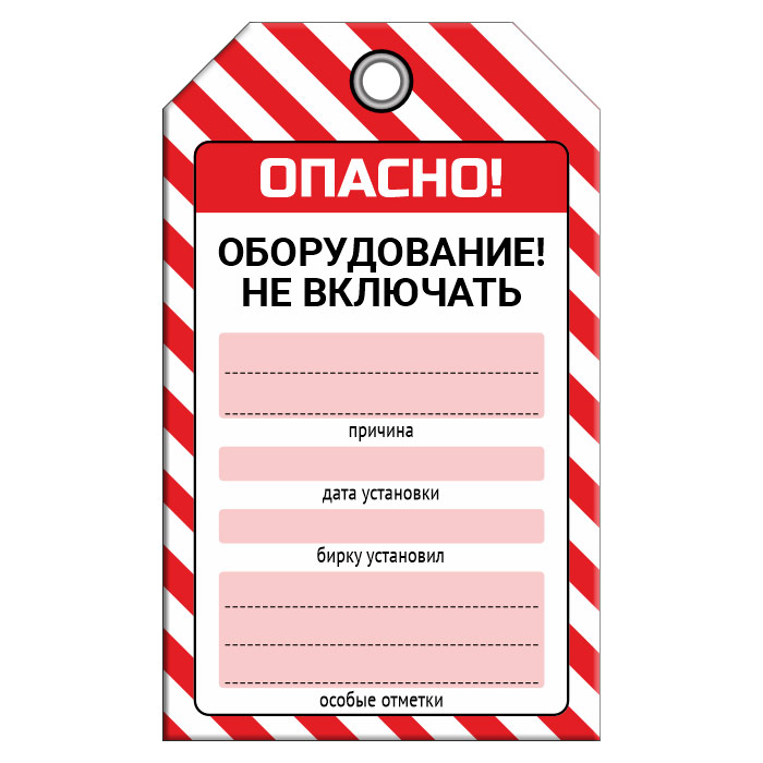 Бирка «ОБОРУДОВАНИЕ НЕ ВКЛЮЧАТЬ!» (1 шт., двусторонняя, пластик, 70х115 мм) в Ижевске купить