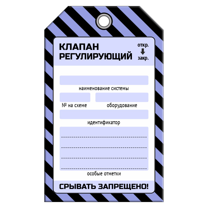 Бирка «КЛАПАН РЕГУЛИРУЮЩИЙ» (1 шт., односторонняя, пластик, 70х115 мм) в Ижевске купить