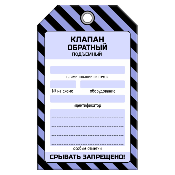 Бирка «КЛАПАН ОБРАТНЫЙ ПОДЪЕМНЫЙ» (1 шт., односторонняя, пластик, 70х115 мм) в Ижевске купить
