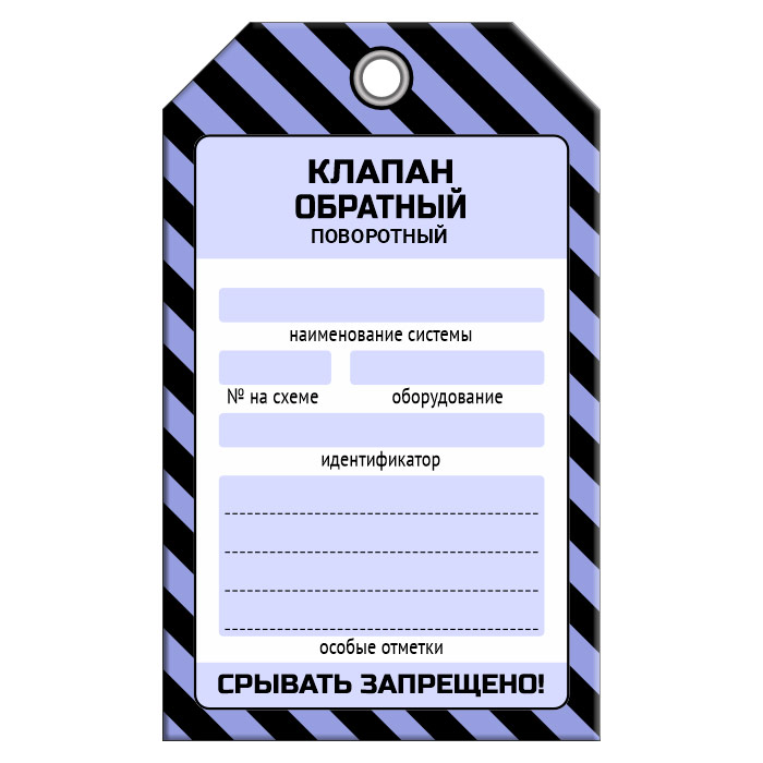Бирка «КЛАПАН ОБРАТНЫЙ ПОВОРОТНЫЙ» (1 шт., односторонняя, пластик, 70х115 мм) в Ижевске купить