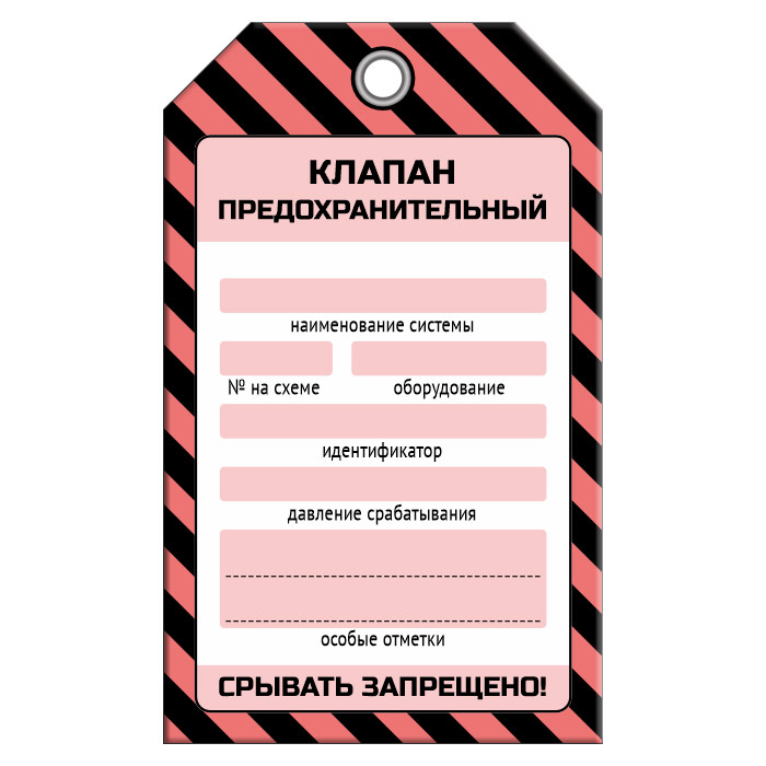 Бирка «КЛАПАН ПРЕДОХРАНИТЕЛЬНЫЙ» (1 шт., односторонняя, пластик, 70х115 мм) в Ижевске купить