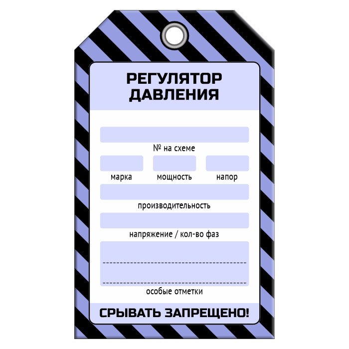 Бирка «РЕГУЛЯТОР ДАВЛЕНИЯ» (1 шт., односторонняя, пластик, 70х115 мм) в Ижевске купить