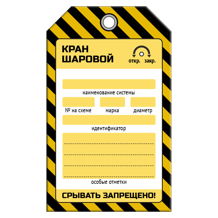 Бирка «КРАН ШАРОВОЙ» для газопровода (1 шт., односторонняя, пластик, 70х115 мм) в Ижевске купить