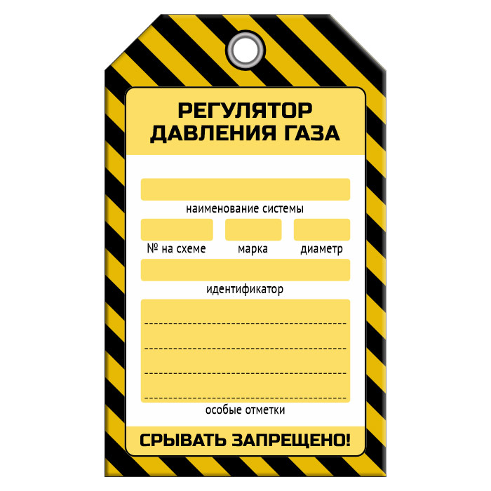 Бирка «РЕГУЛЯТОР ДАВЛЕНИЯ ГАЗА» (1 шт., односторонняя, пластик, 70х115 мм) в Ижевске купить
