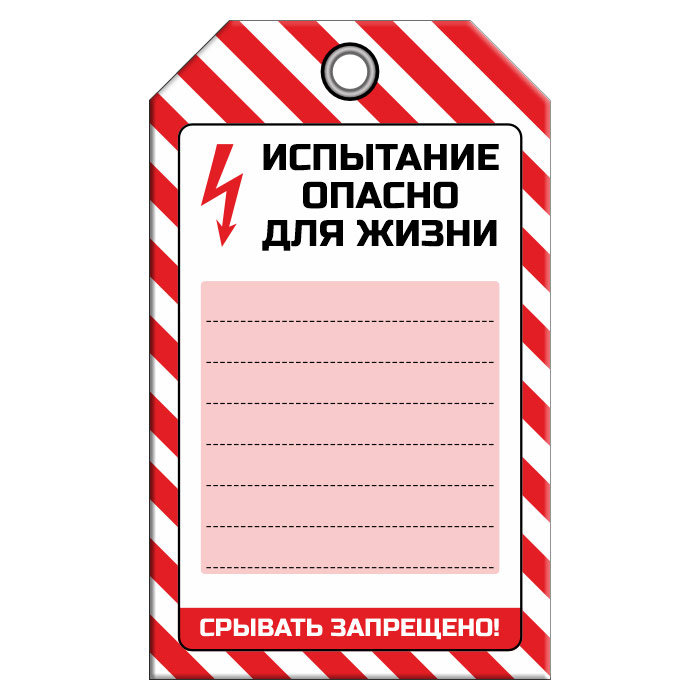 Бирка «ИСПЫТАНИЕ ОПАСНО ДЛЯ ЖИЗНИ» (1 шт., односторонняя, пластик, 70х115 мм) в Ижевске купить
