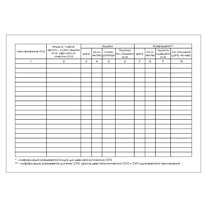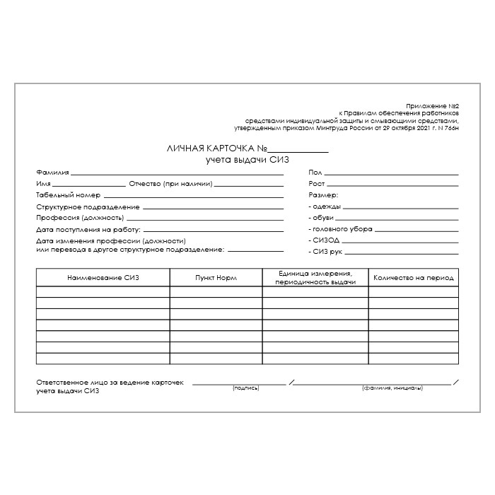 Карточка выдачи СИЗ (приказ Минтруда России от 29 октября 2021 г. №766н, упаковка 100 штук) в Ижевске купить