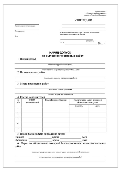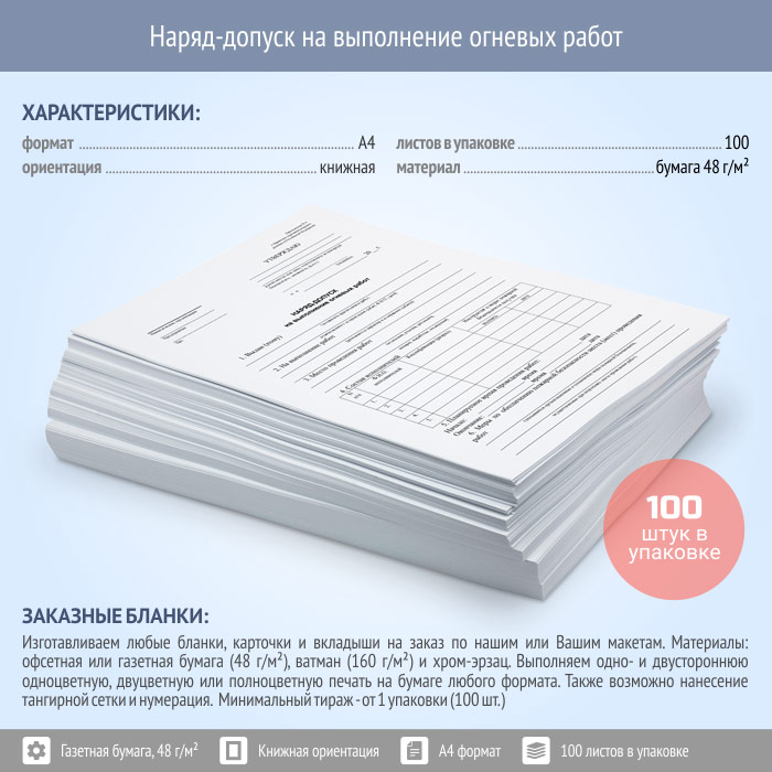 Наряд-допуск на выполнение огневых работ (упаковка из 100 штук) в Ижевске купить
