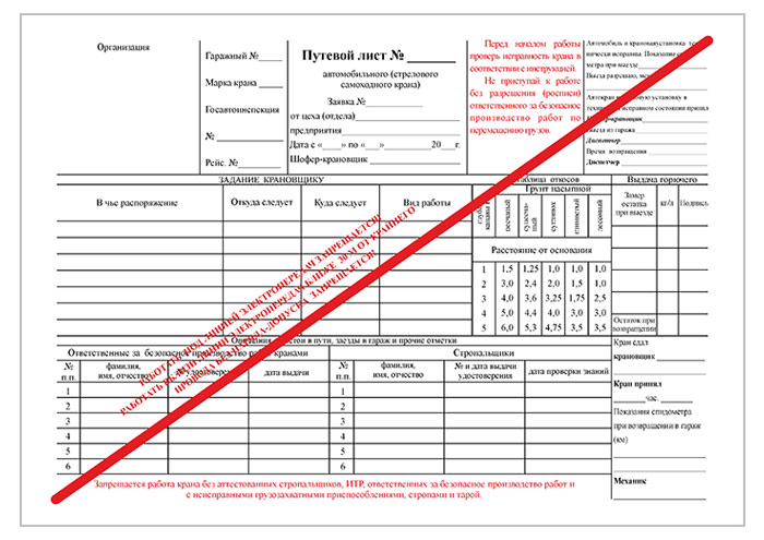 Путевой лист самоходного крана (упаковка из 100 штук) в Ижевске купить
