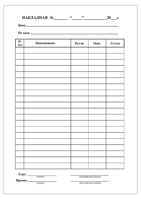 Накладная (упаковка из 100 штук) в Ижевске купить