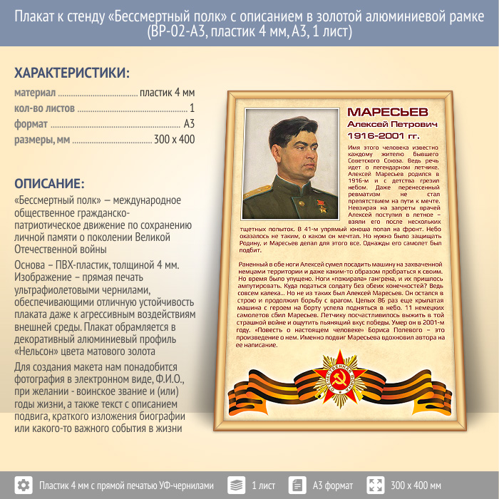 Плакат к стенду «Бессмертный полк» с описанием в золотой (матовой) алюминиевой рамке (BP-02-A3, пластик 4 мм, А3, 1 лист) в Ижевске купить
