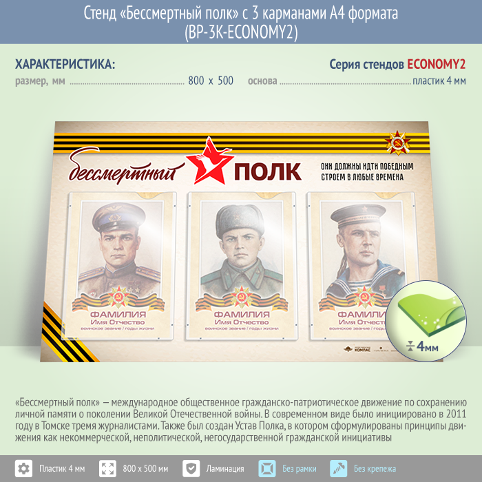 Стенд «Бессмертный полк» с 3 карманами А4 формата (BP-3K-ECONOMY2) в Ижевске купить
