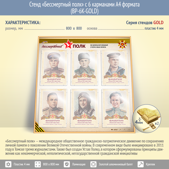 Стенд «Бессмертный полк» с 6 карманами А4 формата (BP-6K-GOLD) в Ижевске купить
