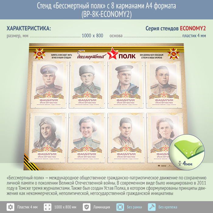 Стенд «Бессмертный полк» с 8 карманами А4 формата (BP-8K-ECONOMY2) в Ижевске купить