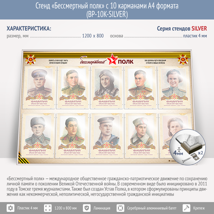 Стенд «Бессмертный полк» с 10 карманами А4 формата (BP-10K-SILVER) в Ижевске купить