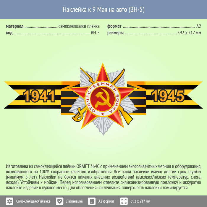 Наклейка к 9 Мая на авто А2 формата (BH-5) в Ижевске купить