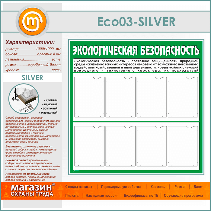 Стенд «Экологическая безопасность» с 8 карманами (ECO-03-SILVER) в Ижевске купить
