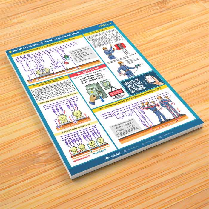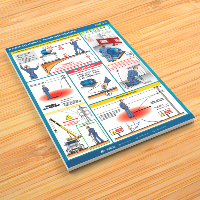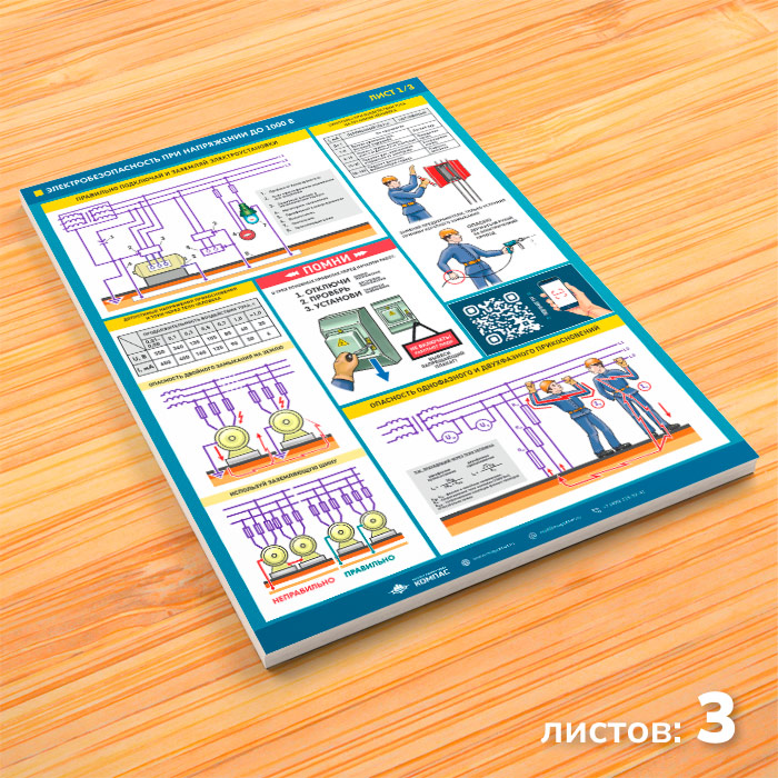 Плакаты «Электробезопасность при напряжении до 1000В» (М-64, ламинированная бумага, А2, 3 листа) в Ижевске купить