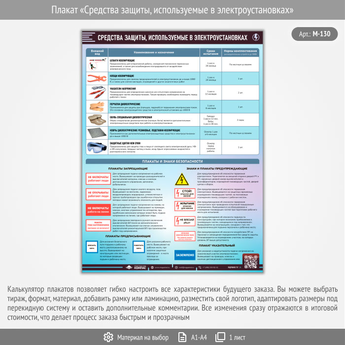 Плакат «Средства защиты, используемые в электроустановках» с QR (М-130, 1 лист) в Ижевске купить