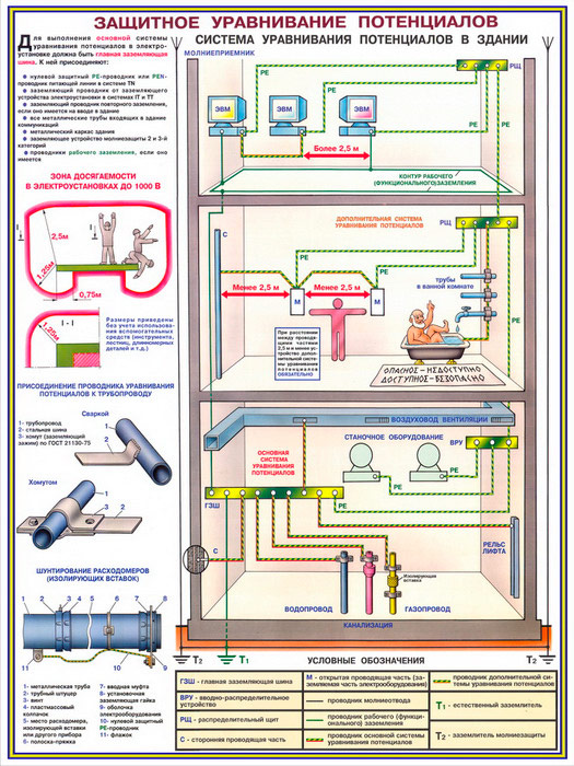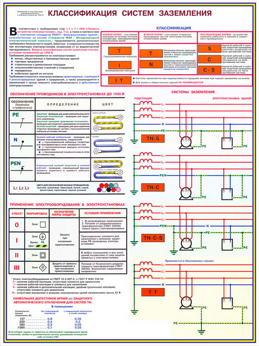 Плакаты «Заземление и защитные меры электробезопасности - напряжение до 1000В» (С-61, ламинированная бумага, А2, 4 листа) в Ижевске купить