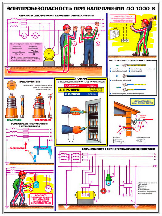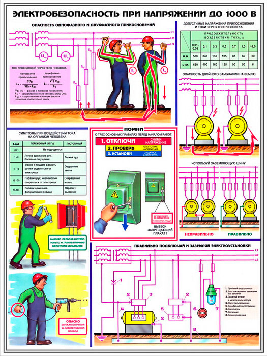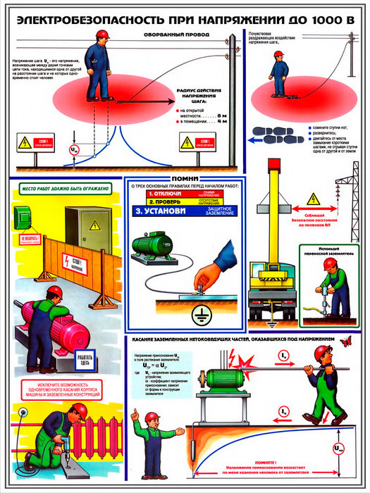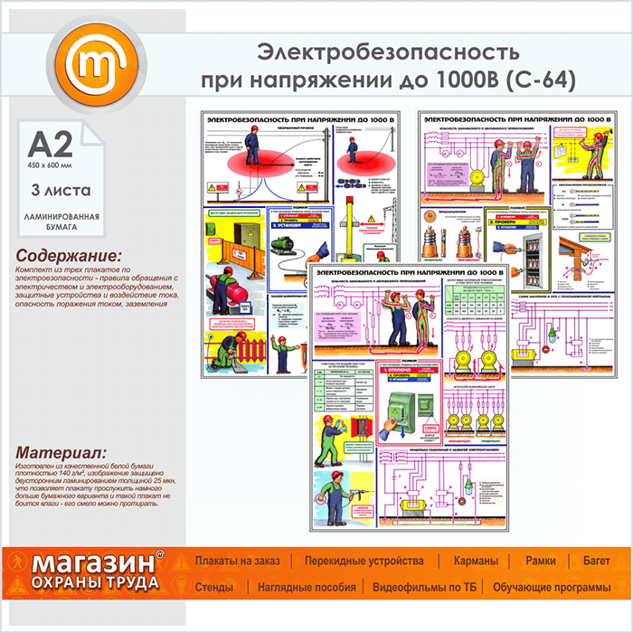 Плакаты «Электробезопасность при напряжении до 1000В» (С-64, ламинированная бумага, А2, 3 листа) в Ижевске купить