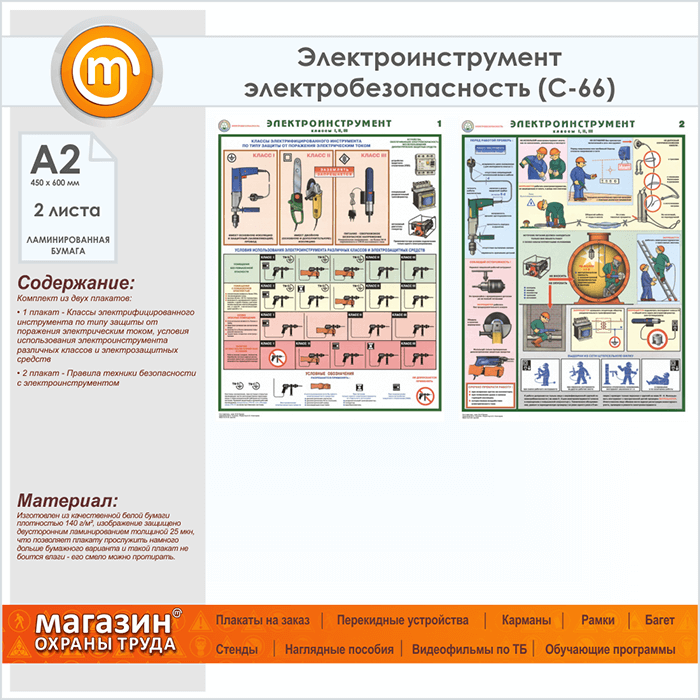 Плакаты «Электроинструмент - электробезопасность» (С-66, ламинированная бумага, А2, 2 листа) в Ижевске купить
