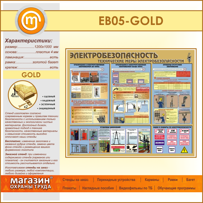 Стенд «Электробезопасность. Технические меры электробезопасности» (EB-05-GOLD) в Ижевске купить