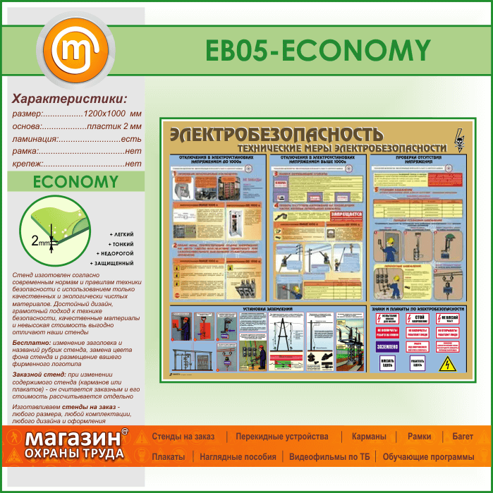 Стенд «Электробезопасность. Технические меры электробезопасности» (EB-05-ECONOMY) в Ижевске купить
