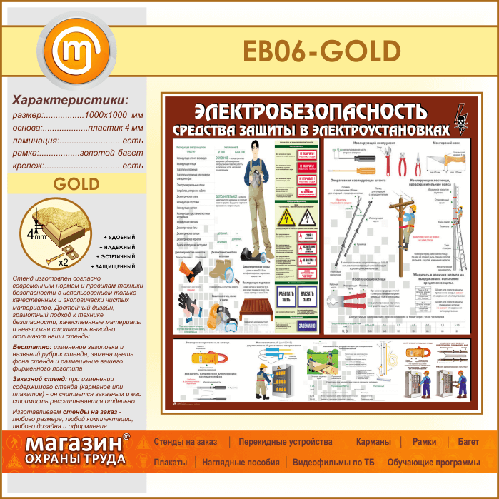 Стенд «Электробезопасность. Средства защиты в электроустановках» (EB-06-GOLD) в Ижевске купить