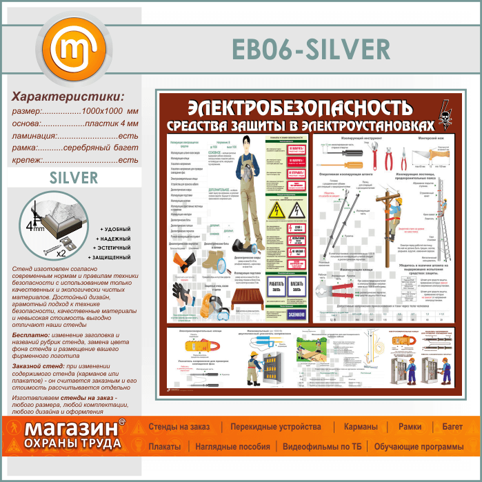 Стенд «Электробезопасность. Средства защиты в электроустановках» (EB-06-SILVER) в Ижевске купить