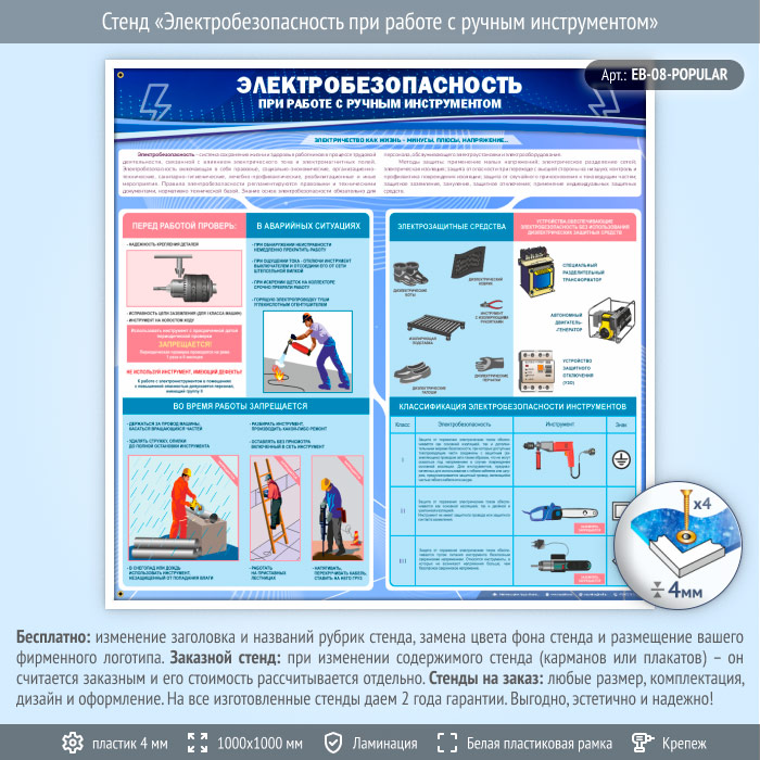 Стенд «Электробезопасность при работе с ручным инструментом» (EB-08-POPULAR) в Ижевске купить