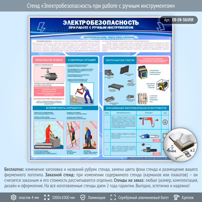 Стенд «Электробезопасность при работе с ручным инструментом» (EB-08-SILVER) в Ижевске купить
