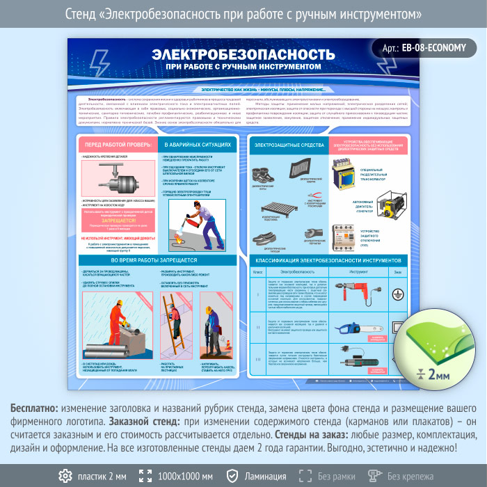 Стенд «Электробезопасность при работе с ручным инструментом» (EB-08-ECONOMY) в Ижевске купить