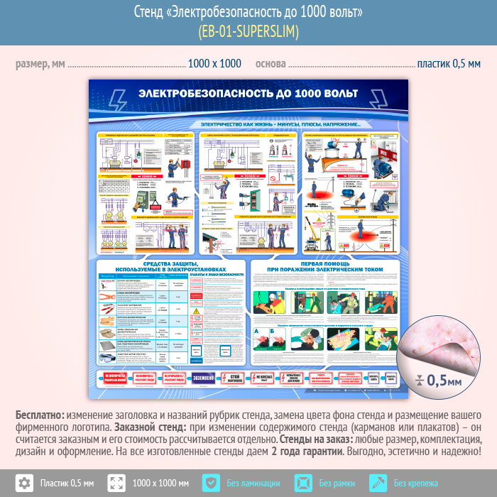 Стенд «Электробезопасность до 1000 вольт» (EB-01-SUPERSLIM) в Ижевске купить