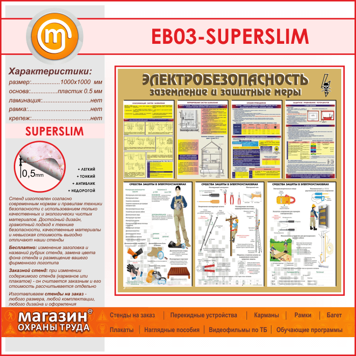Стенд «Электробезопасность. Заземление и защитные меры» (EB-03-SUPERSLIM) в Ижевске купить