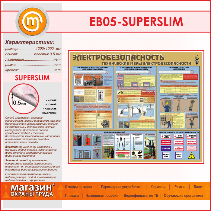 Стенд «Электробезопасность. Технические меры электробезопасности» (EB-05-SUPERSLIM) в Ижевске купить