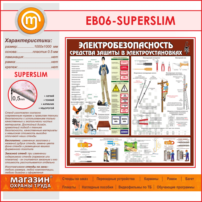 Стенд «Электробезопасность. Средства защиты в электроустановках» (EB-06-SUPERSLIM) в Ижевске купить