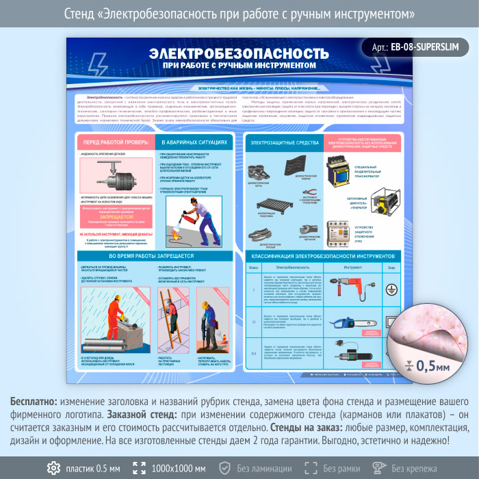 Стенд «Электробезопасность при работе с ручным инструментом» (EB-08-SUPERSLIM) в Ижевске купить