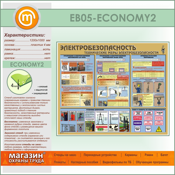 Стенд «Электробезопасность. Технические меры электробезопасности» (EB-05-ECONOMY2) в Ижевске купить