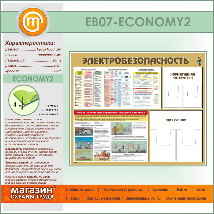 Стенд «Электробезопасность» с 4 объемными карманами (EB-07-ECONOMY2) в Ижевске купить