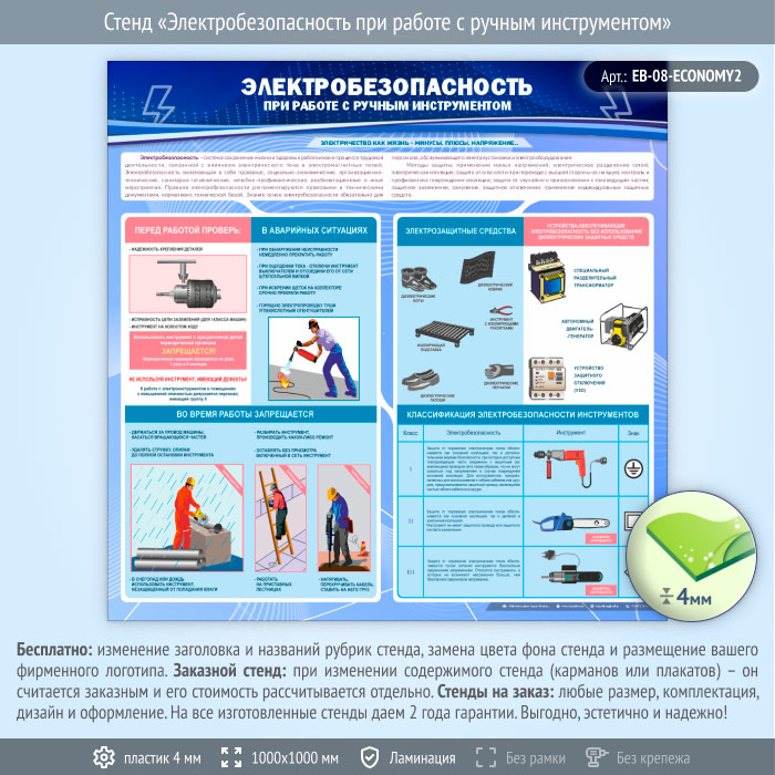 Стенд «Электробезопасность при работе с ручным инструментом» (EB-08-ECONOMY2) в Ижевске купить