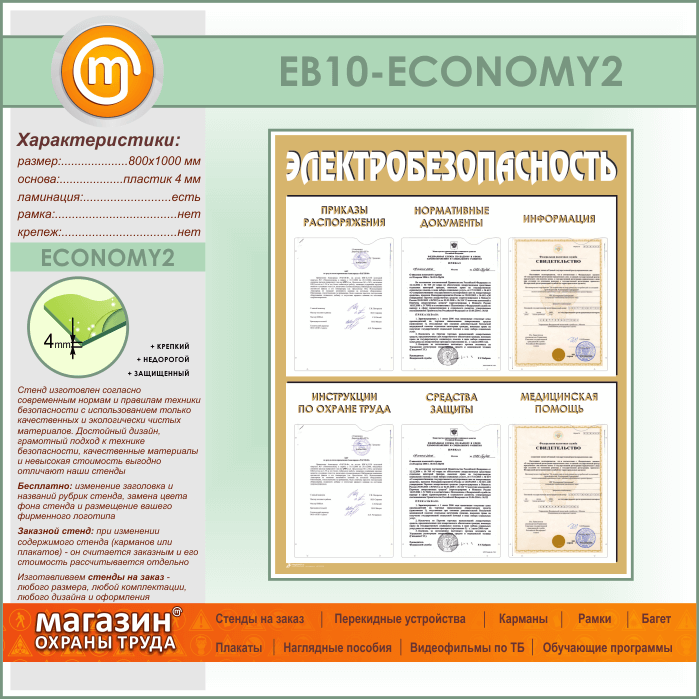Стенд «Электробезопасность» с 6 карманами (EB-10-ECONOMY2) в Ижевске купить