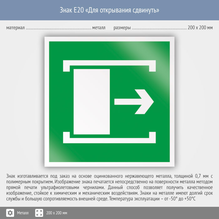 Знак E20 «Для открывания сдвинуть» (металл, 200х200 мм) в Ижевске купить