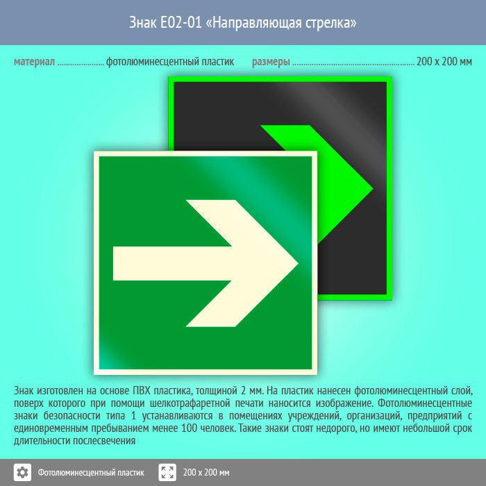 Знак E02-01 «Направляющая стрелка» (фотолюминесцентный пластик, 200х200 мм) в Ижевске купить