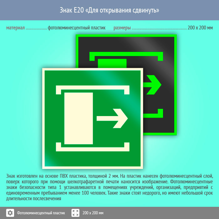 Знак E20 «Для открывания сдвинуть» (фотолюминесцентный пластик, 200х200 мм) в Ижевске купить