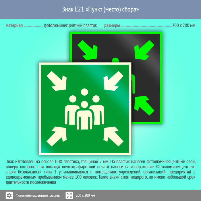 Знак E21 «Пункт (место) сбора» (фотолюминесцентный пластик, 200х200 мм) в Ижевске купить