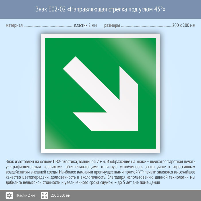 Знак E02-02 «Направляющая стрелка под углом 45°» (пластик, 200х200 мм) в Ижевске купить