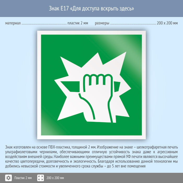 Знак E17 «Для доступа вскрыть здесь» (пластик, 200х200 мм) в Ижевске купить