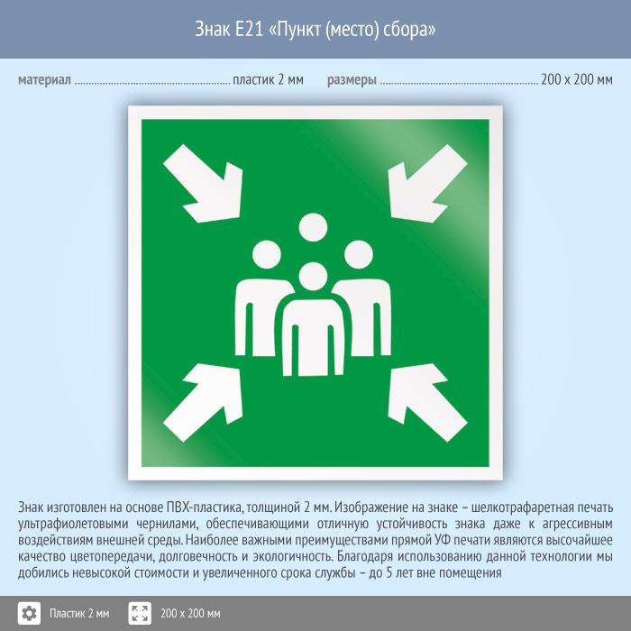 Знак E21 «Пункт (место) сбора» (пластик, 200х200 мм) в Ижевске купить